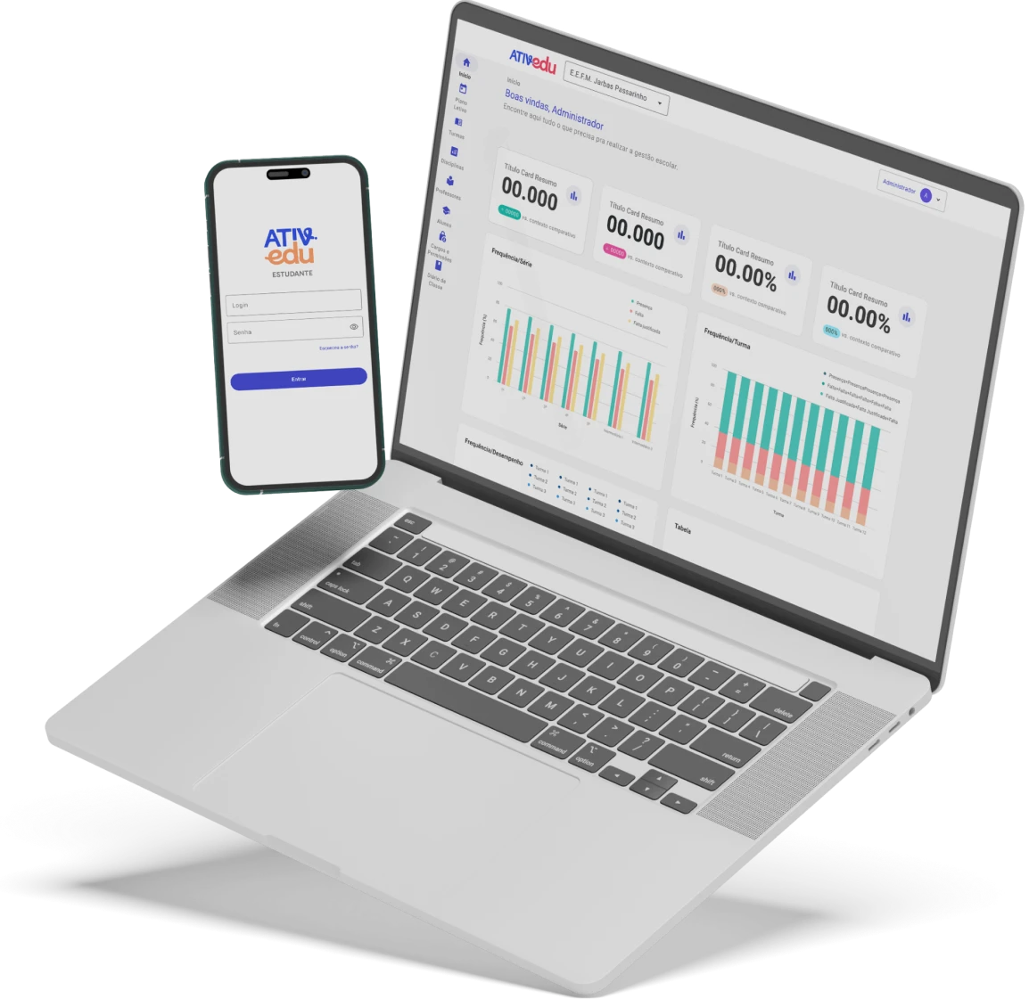 O Ativedu atende o ecossistema da educação pública com acesso via plataforma web para secretarias de educação, gestores escolares e professores, e aplicativo móvel para professores, estudantes e responsáveis..